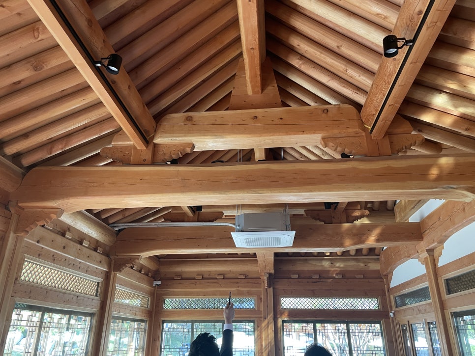 한옥(희온재)의 난제: 서까래와 기둥이 노출된 한옥 구조상, 케이블 배관이 조금이라도 보이면 고즈넉한 분위기를 망치게 됩니다. '완벽한 은폐 배선'이 시공의 핵심 과제였습니다.
